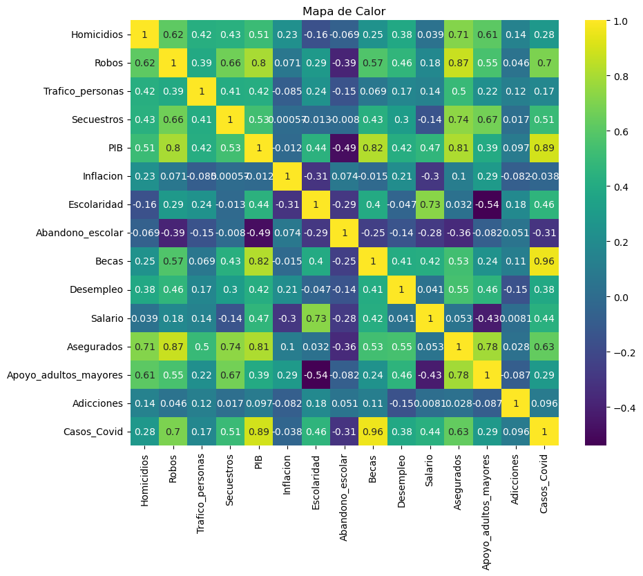En este proyecto se analizaron las correlaciones entre distintas variables de los sectores: Seguridad, salud, economía, empleo y educación