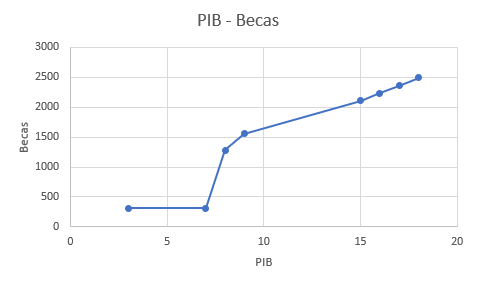 Para una entidad con un PIB de 16% la cantidad de Becas otorgadas sería de 2,234 por año.